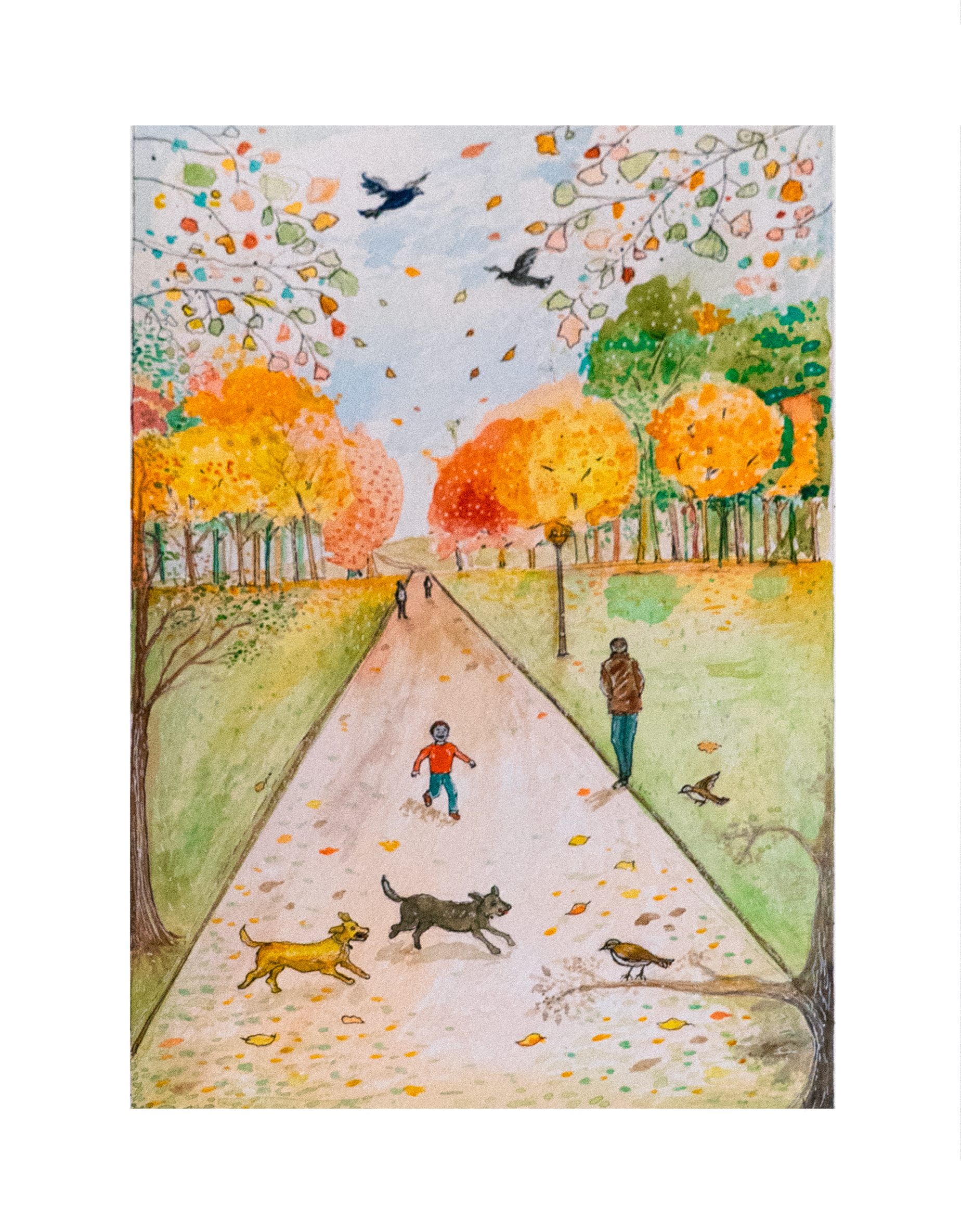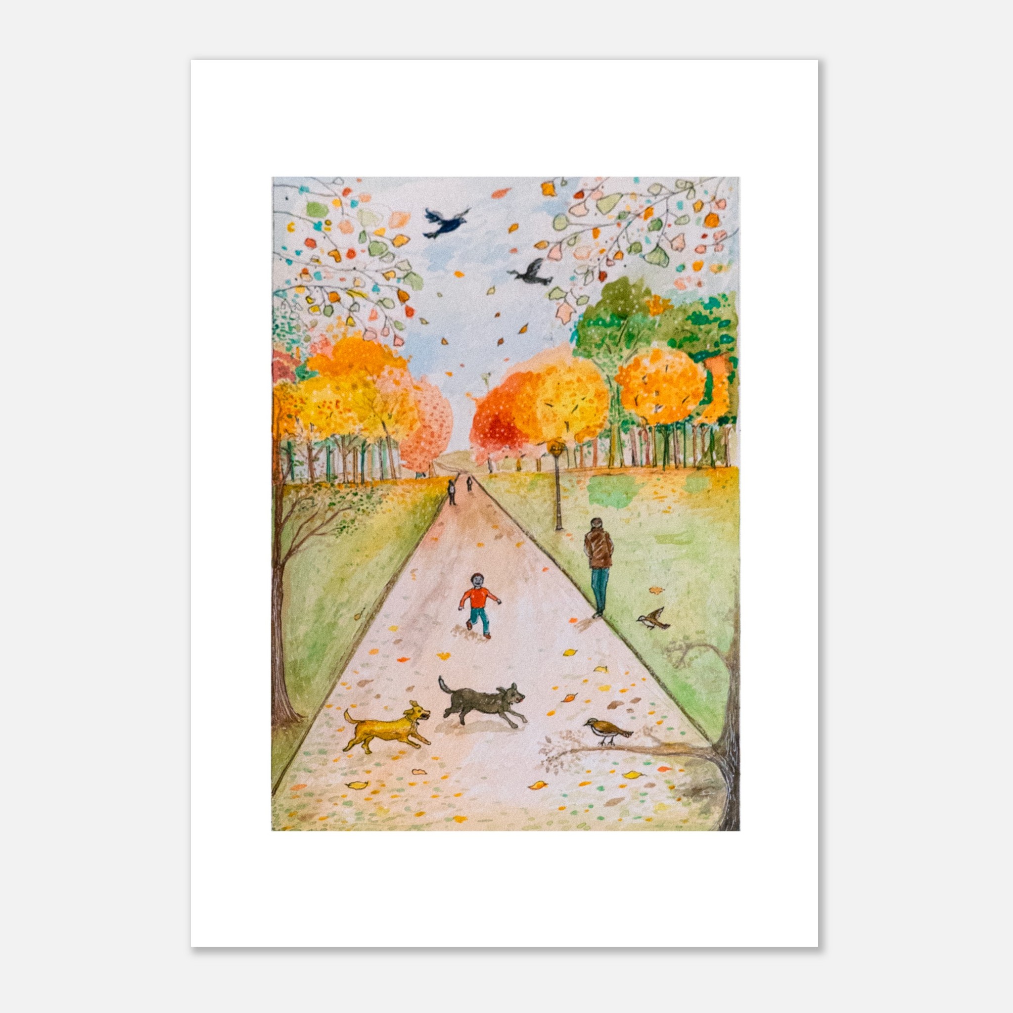 “Autumn Walk in Greenwich” captures that fleeting moment where nature, time, and memory meet. Inspired by a real afternoon walk through Greenwich Park, this watercolor celebrates the warmth of everyday beauty and the quiet rhythm of changing seasons.